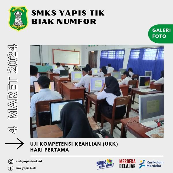 UKK TA 2023/2024, Ujian Kompetensi Keahlian, merupakan ujian praktek yang harus dilalui oleh siswa SMK guna memperoleh sertifikat kompetensi sesuai dengan Progam Keahlian yang dipilih.